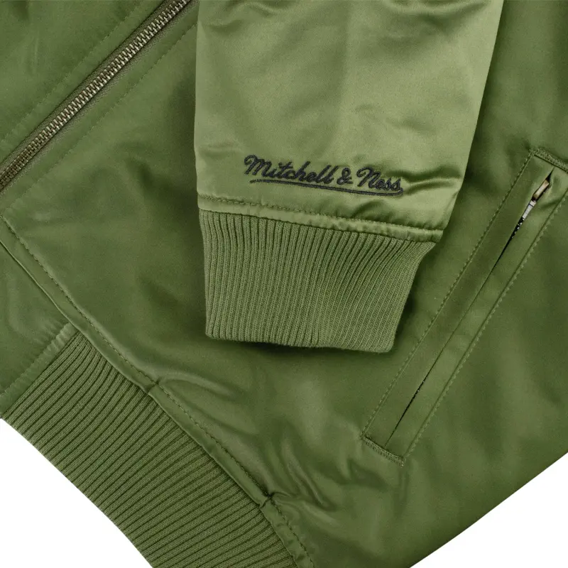 This Satin Bomber jacket by Mitchell & Ness is great for looking stylish & staying warm all at the same time! Order yours today!