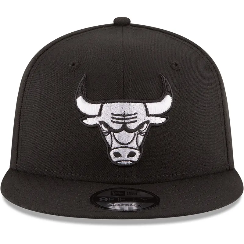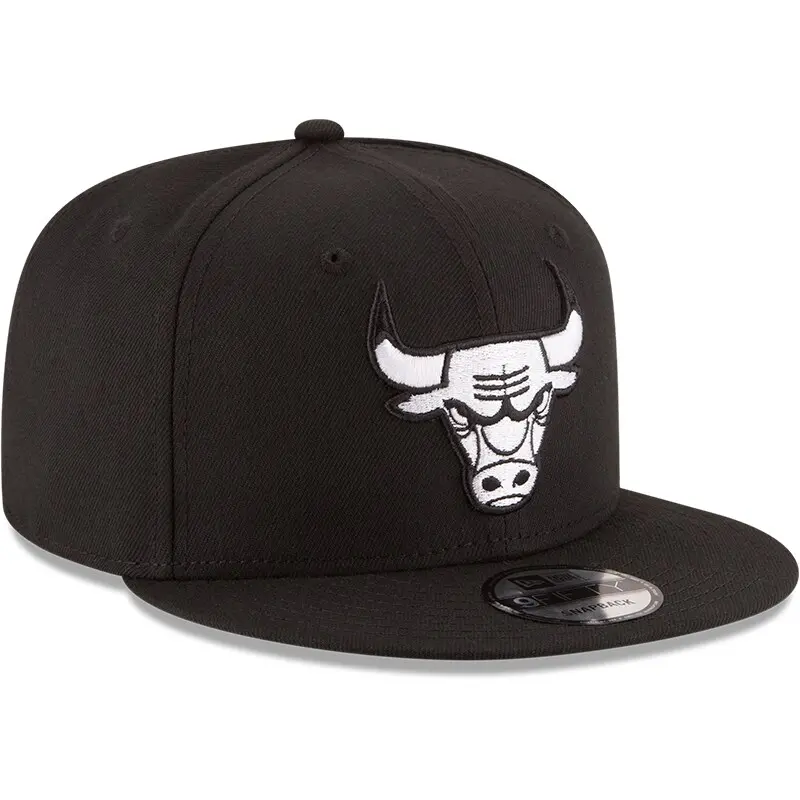 Men’s Chicago Bulls New Era Black Black & White Logo 9FIFTY Adjustable Snapback Hat